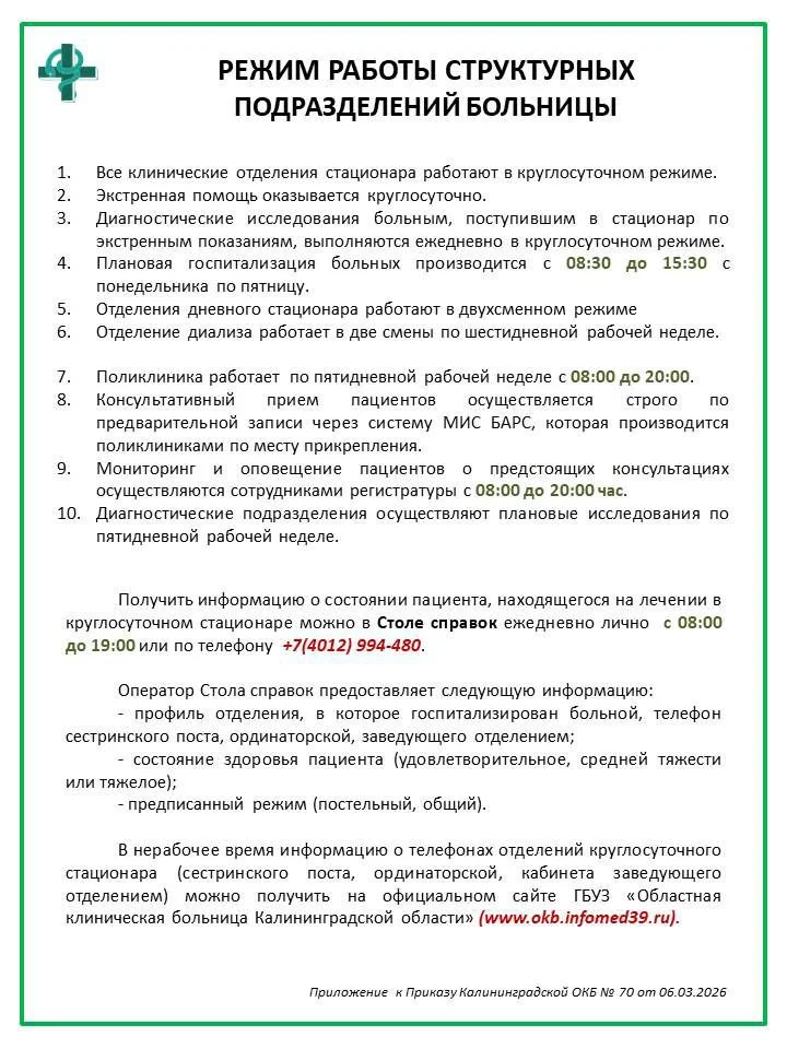 консультативная поликлиника: +7 (4012) 994-472;