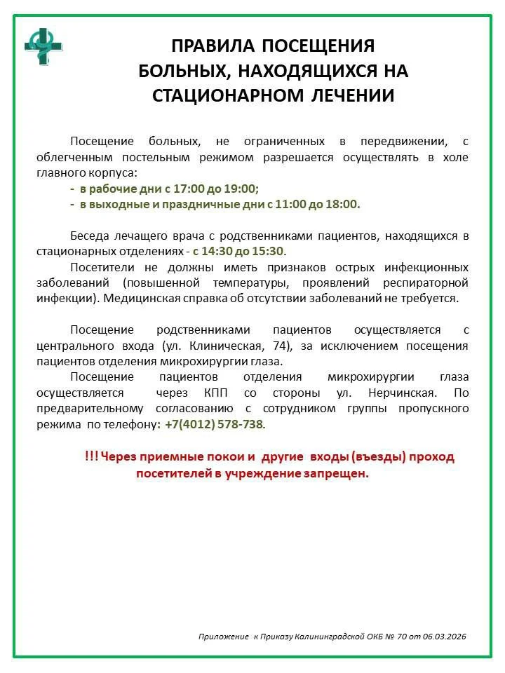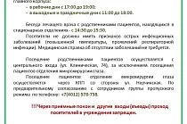 Уважаемые пациенты и родственники пациентов, обратите внимание на правила в посещении пациентов, находящихся на лечении в стационаре. Вся информация в карточках.