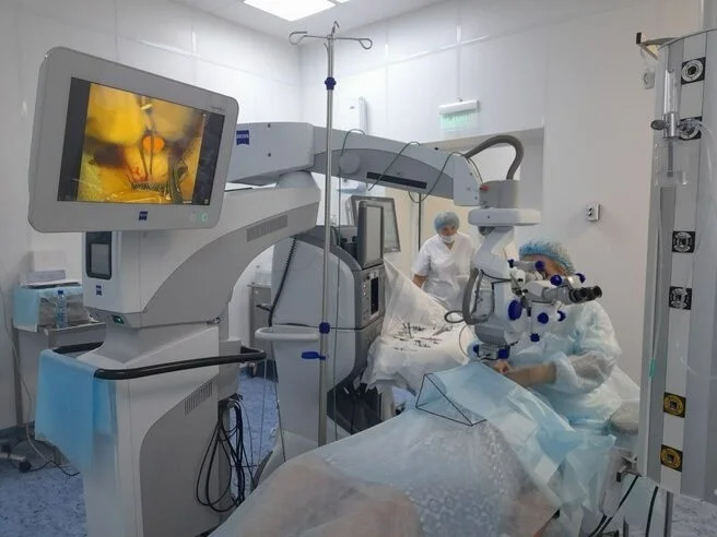 Сегодня , благодаря современной технике врачи быстро и безболезненно удалили катаракту пожилой жительнице Черняховска.