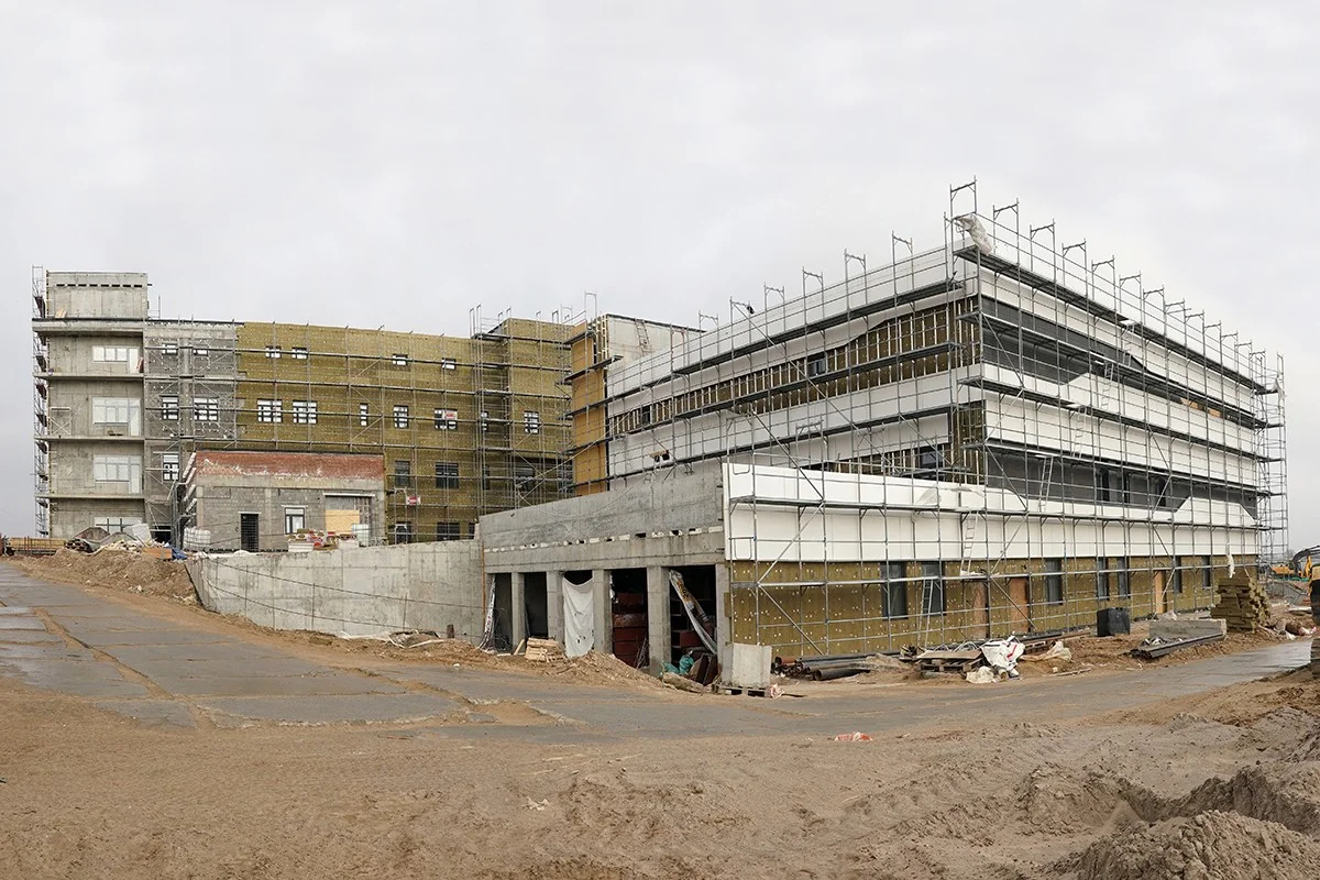 На строительной площадке трудятся в среднем по 400 человек ежедневно. На объекте активно ведется отделка внутренних помещений, монтаж фасада, слаботочных систем, водоснабжения и водоотведения. С декабря прошлого года здание отапливается, что дало возможность ускорить темп работ.