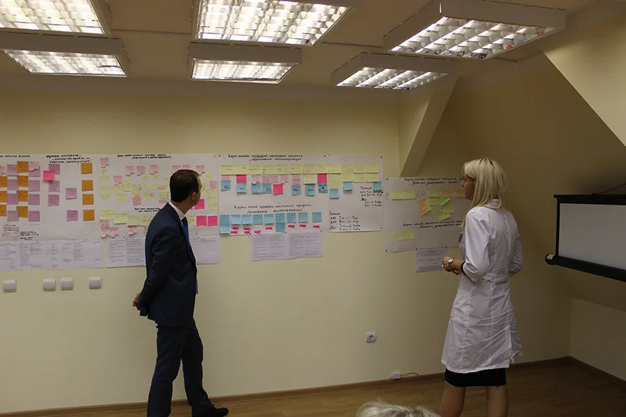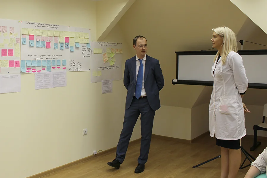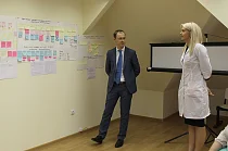 В ходе презентации специалисты поликлиники рассказали об управленческих решениях, которые позволили сократить время пребывания пациента в поликлинике и кабинете врача, в частности, участкового терапевта, больше чем в два раза. Среди них – передача обязанности выписки талонов на лабораторные исследования и ЭКГ из регистратуры и ранее отдельно выделенного для этих целей кабинета непосредственно в кабинет врача, упорядочение выдачи больничных листов, сокращение времени выписки направлений на консультацию к областным специалистам, количества посещений врачей во время диспансеризации и т.д. Также специалисты поликлиники на ул. Генделя поделились дальнейшими планами реализации проекта.